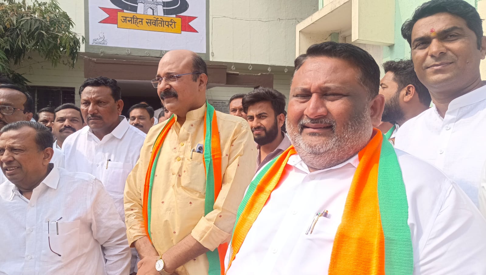 भाजपा कार्यालयातून निघालेल्या या नामांकन प्रक्रियेवेळी पक्षाचे दिग्गज नेते उपस्थित होते: