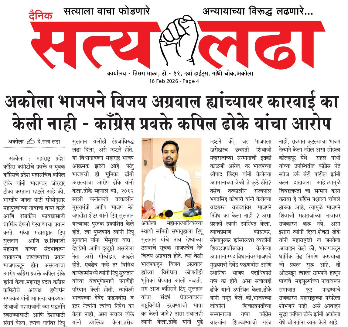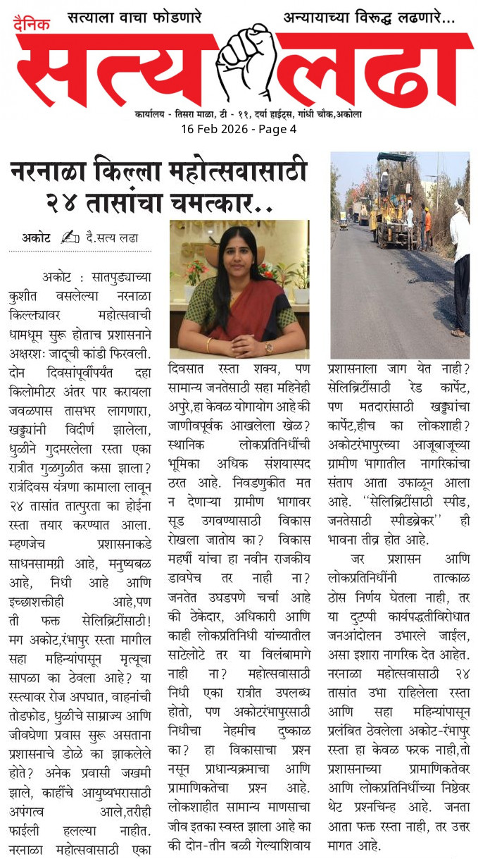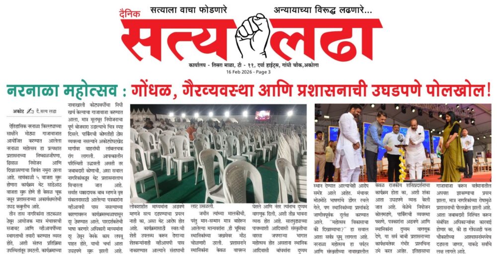 AKOLA NEWS नरनाळा महोत्सव : गोंधळ, गैरव्यवस्था आणि प्रशासनाची उघडपणे पोलखोल ! admin February 15, 2026 Share this: Share on Facebook (Opens in new window) Facebook Share on X (Opens in new window) X WhatsApp Facebook Twitter Like this:Like Loading... Post navigation Previous: मूर्तिजापूरमध्ये बेपत्ता इसमाचा कुजलेल्या अवस्थेतील मृतदेहNext: “रणधीर भाऊ, वर्षाताई आम्ही बांगलादेशी की पाकिस्तानी.. आदिवासी विद्यार्थ्यांचा टाहो Leave a Reply Cancel replyYour email address will not be published. Required fields are marked *Comment * Name * Email * Website Save my name, email, and website in this browser for the next time I comment.