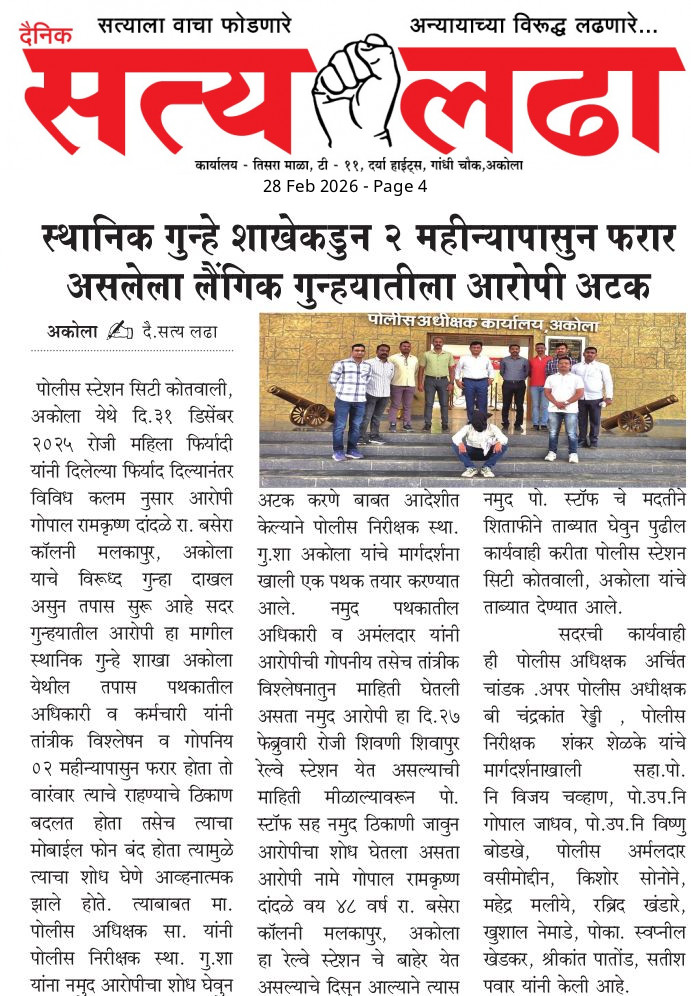 AKOLA NEWS खडकीतील निवासी अपार्टमेंटमध्ये सुरू असलेल्या देहव्यापाराचा पर्दाफाश..! admin February 27, 2026 WhatsApp Facebook Twitter Post navigation Previous: महानगरपालिकेच्या स्थायी समिती सभापती पदाकरिता विजय अग्रवाल यांची निवड निश्चित ?Next: जिल्हा पोलीस अधीक्षक लक्ष देणार का ? शहर वाहतूक पोलिसांचे जाणीवपूर्वक दुर्लक्ष ? Leave a Reply Cancel replyYour email address will not be published. Required fields are marked *Comment * Name * Email * Website Save my name, email, and website in this browser for the next time I comment.