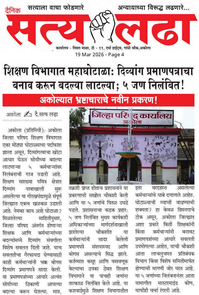 AKOLA NEWS निवडून येताच निष्ठेला ‘जय महाराष्ट्र’; अकोला मनपा निवडणुकीनंतर राजकीय भूकंप admin March 18, 2026 Share this: Share on Facebook (Opens in new window) Facebook Share on X (Opens in new window) X WhatsApp Facebook Twitter Like this:Like Loading... Post navigation Previous: शिवसेना (उबाठा) आमदार नितीन देशमुख यांना मोठा धक्का; अकोल्यात जिल्हाध्यक्षांसह ४ नगरसेवकांचा शिंदे गटात प्रवेशNext: पोलीस स्टेशन डाबकी रोड येथील खुनाच्या गुन्हयातील आरोपीतांना अवघ्या ६ तासात अटक Leave a Reply Cancel replyYour email address will not be published. Required fields are marked *Comment * Name * Email * Website Save my name, email, and website in this browser for the next time I comment.