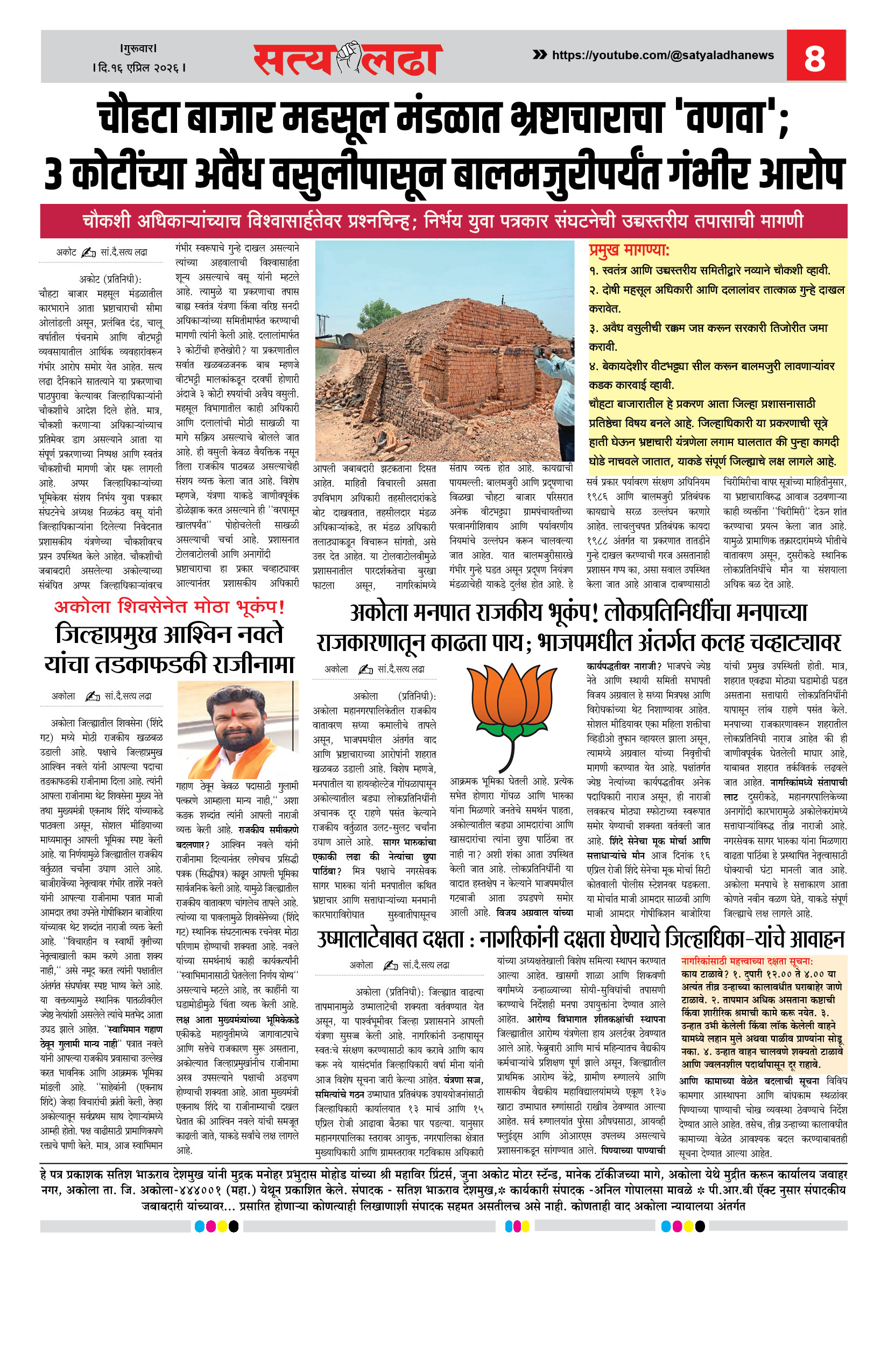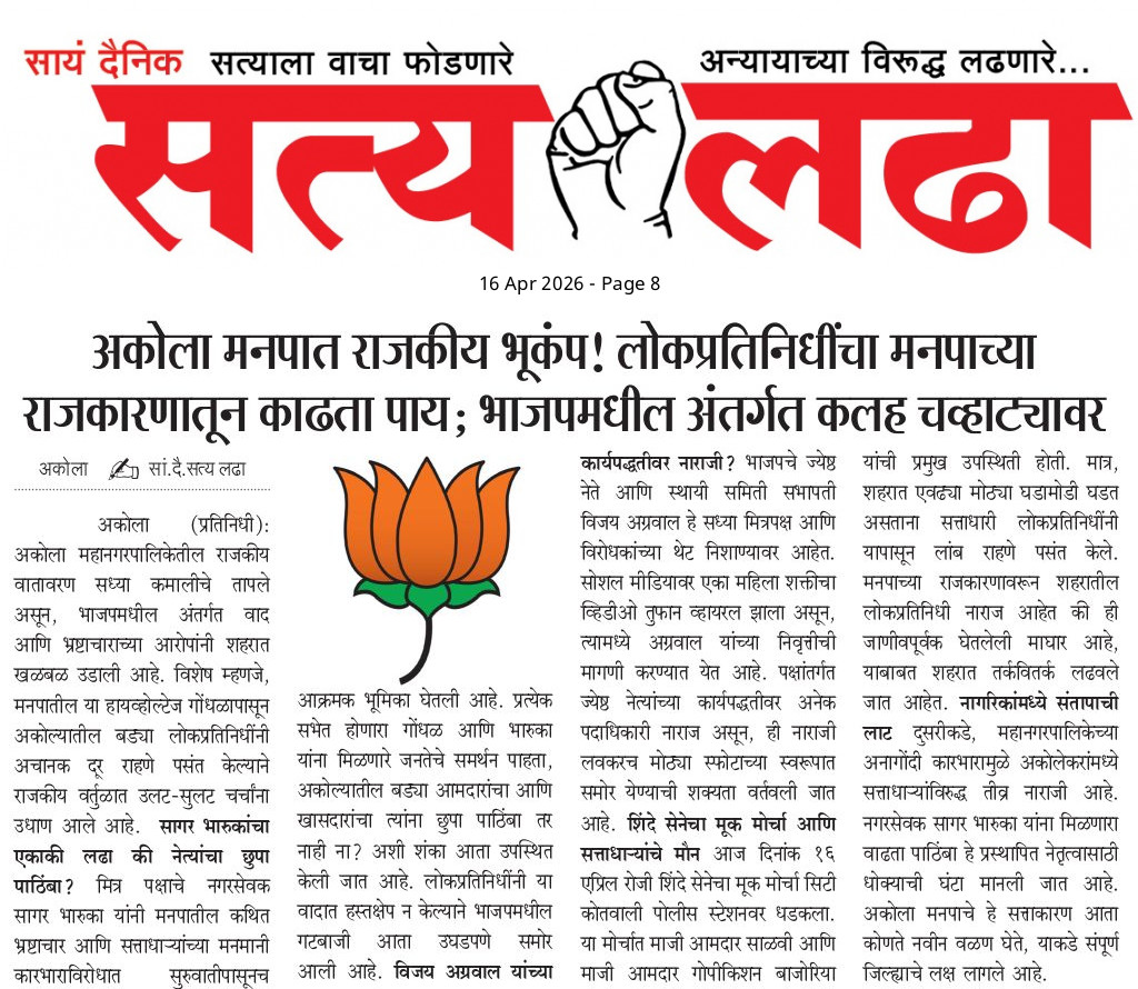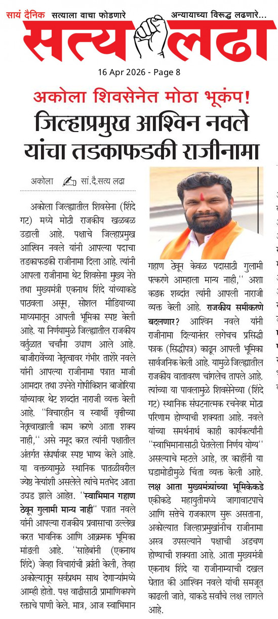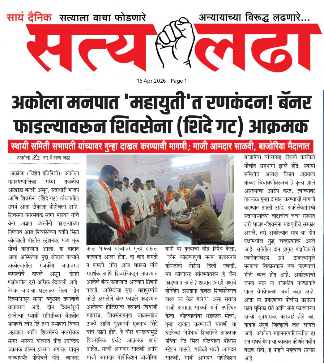 AKOLA NEWS अकोला मनपात ‘महायुती’त रणकंदन ! बॅनर फाडल्यावरून शिवसेना (शिदे गट) आक्रमक admin April 16, 2026 Share this: Share on Facebook (Opens in new window) Facebook Share on X (Opens in new window) X WhatsApp Facebook Twitter Like this:Like Loading... Post navigation Previous: अकोला मनपात भाजप-शिवसेना आमनेसामने; विजय अग्रवाल आणि सागर भारुका यांच्यातील वाद विकोपाला! Leave a Reply Cancel replyYour email address will not be published. Required fields are marked *Comment * Name * Email * Website Save my name, email, and website in this browser for the next time I comment.