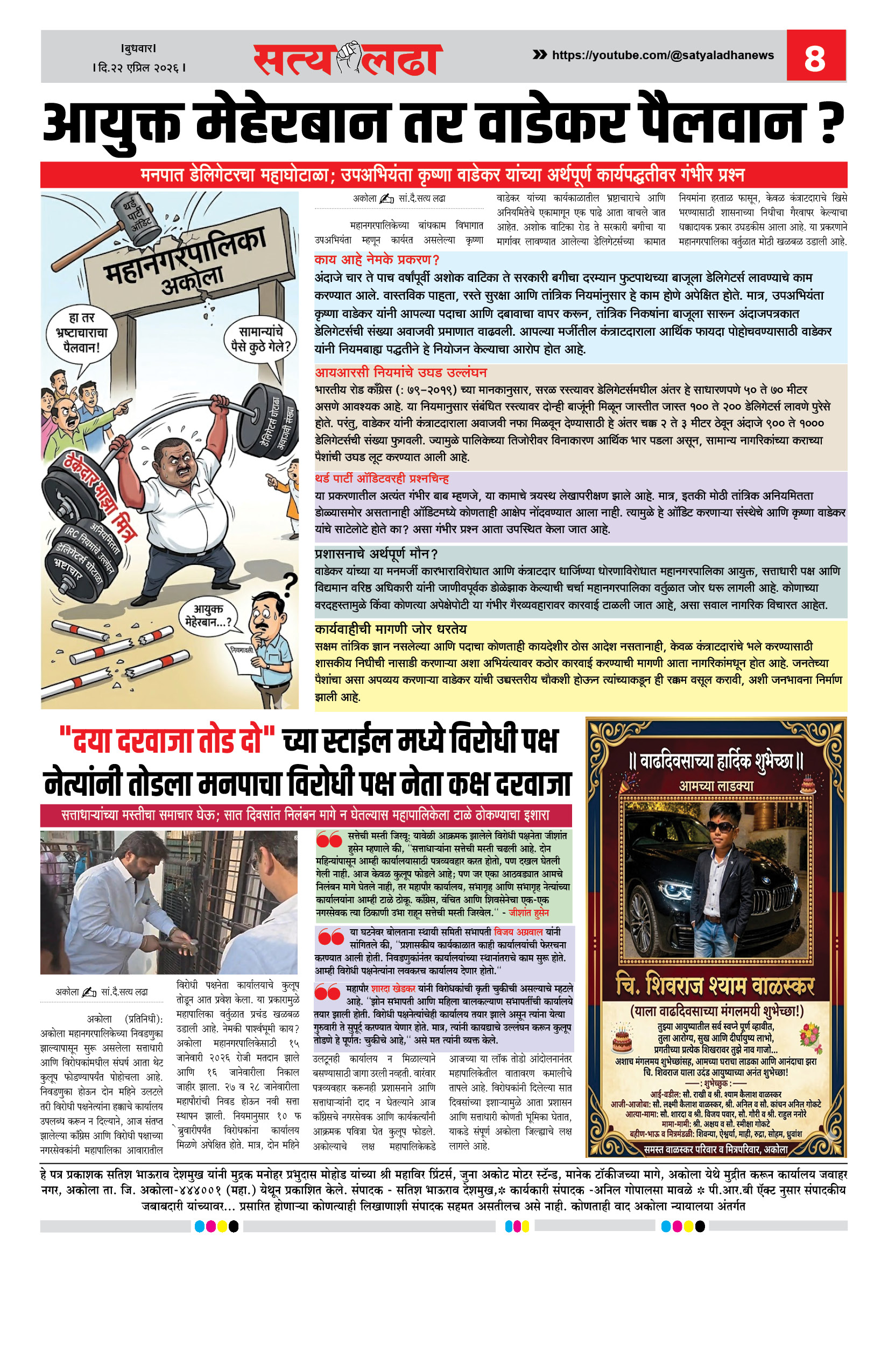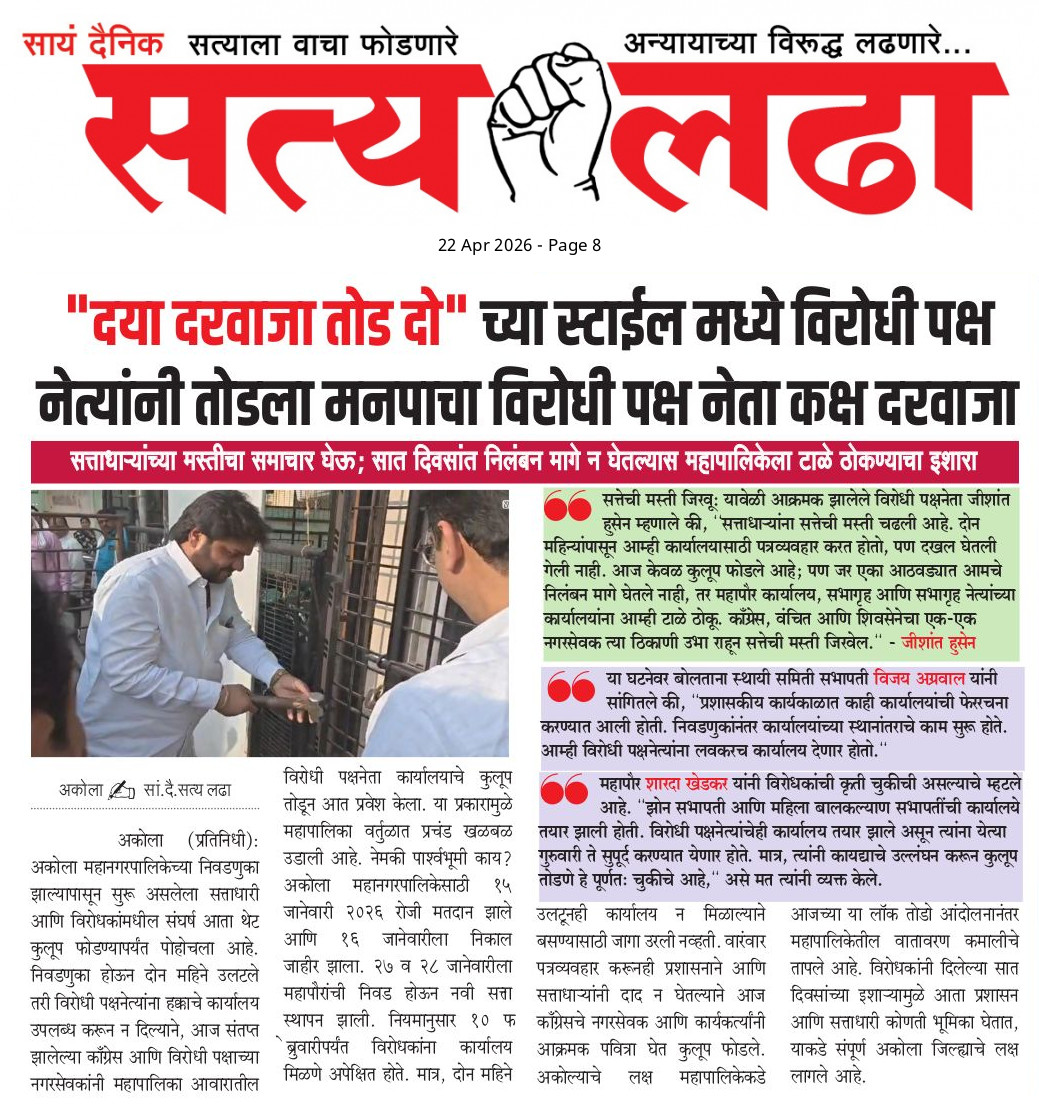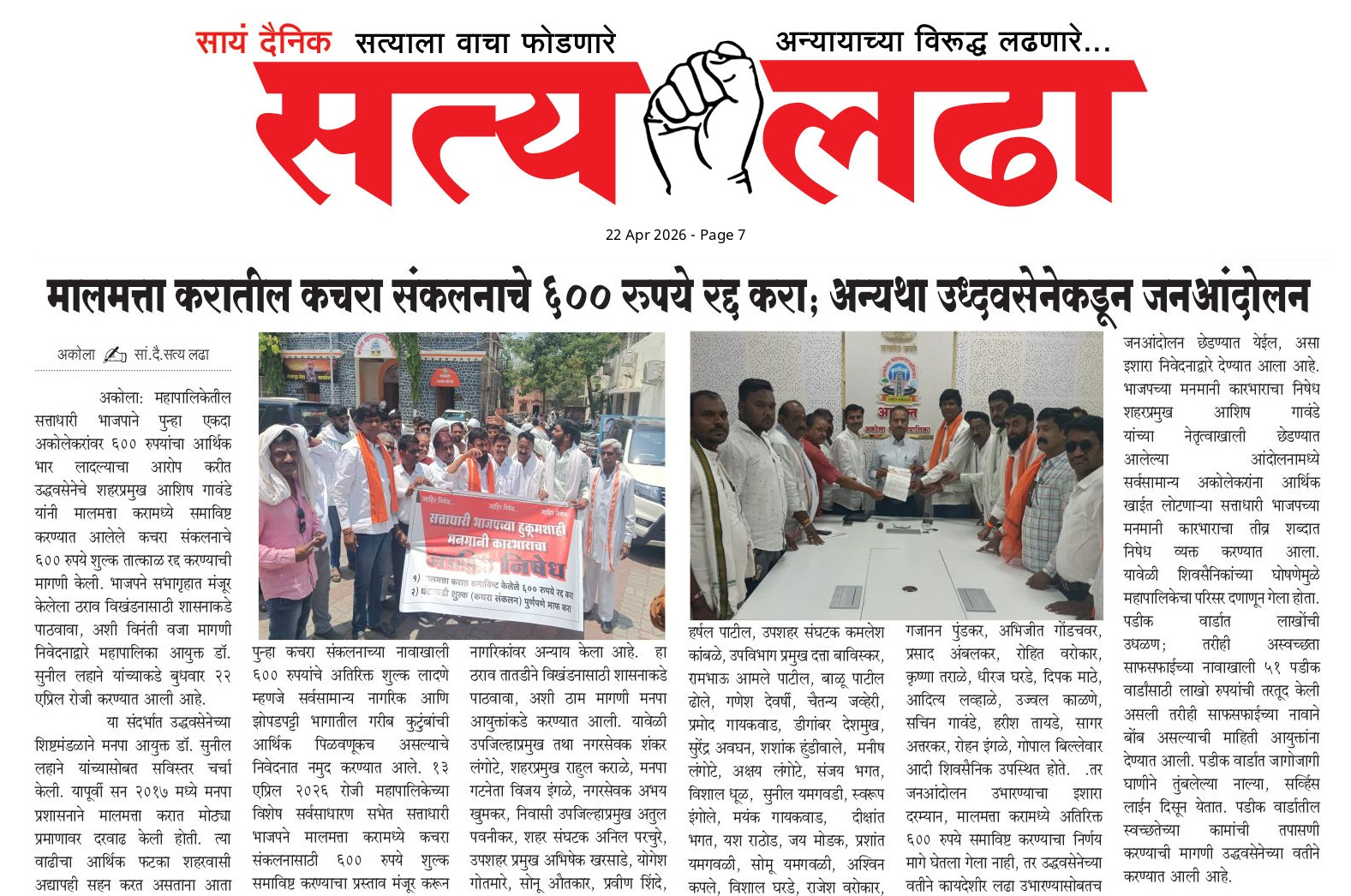 AKOLA NEWS धक्कादायक! अकोला जिल्ह्यात अंधश्रद्धेचा अघोरी कळस; चिमुकल्यांचा जीव धोक्यात घालून रंगतोय ‘अंधश्रद्धेचा बाजार’ admin April 22, 2026 Share this: Share on Facebook (Opens in new window) Facebook Share on X (Opens in new window) X WhatsApp Facebook Twitter Like this:Like Loading... Post navigation Previous: भ्रष्टाचाराच्या आरोपांचे काळे सावट असताना ‘परमनंट’ होण्याचा घाट; वादग्रस्त उपअभियंता वाडेकर यांचे निलंबन कधी ? Leave a Reply Cancel replyYour email address will not be published. Required fields are marked *Comment * Name * Email * Website Save my name, email, and website in this browser for the next time I comment.