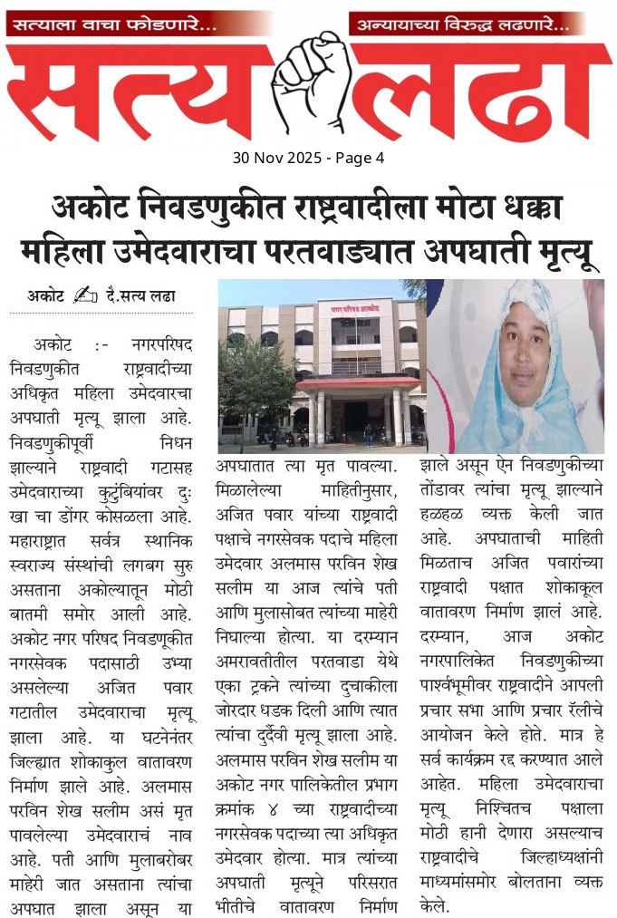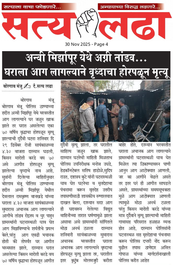 AKOLA NEWS अन्वी मिर्झापूर येथे अग्नी तांडव… घराला आग लागल्याने वृध्दाचा होरपळून मृत्यू admin November 29, 2025 Share this: Share on Facebook (Opens in new window) Facebook Share on X (Opens in new window) X WhatsApp Facebook Twitter Like this:Like Loading... Post navigation Previous: विहिरीत आढळली कार; आत मिळाले पती-पत्नीचे मृतदेह!Next: कुरणखेड येथील श्री .चंडिका देवी संस्थान वर पुन्हा चोरी Leave a Reply Cancel replyYour email address will not be published. Required fields are marked *Comment * Name * Email * Website Save my name, email, and website in this browser for the next time I comment.