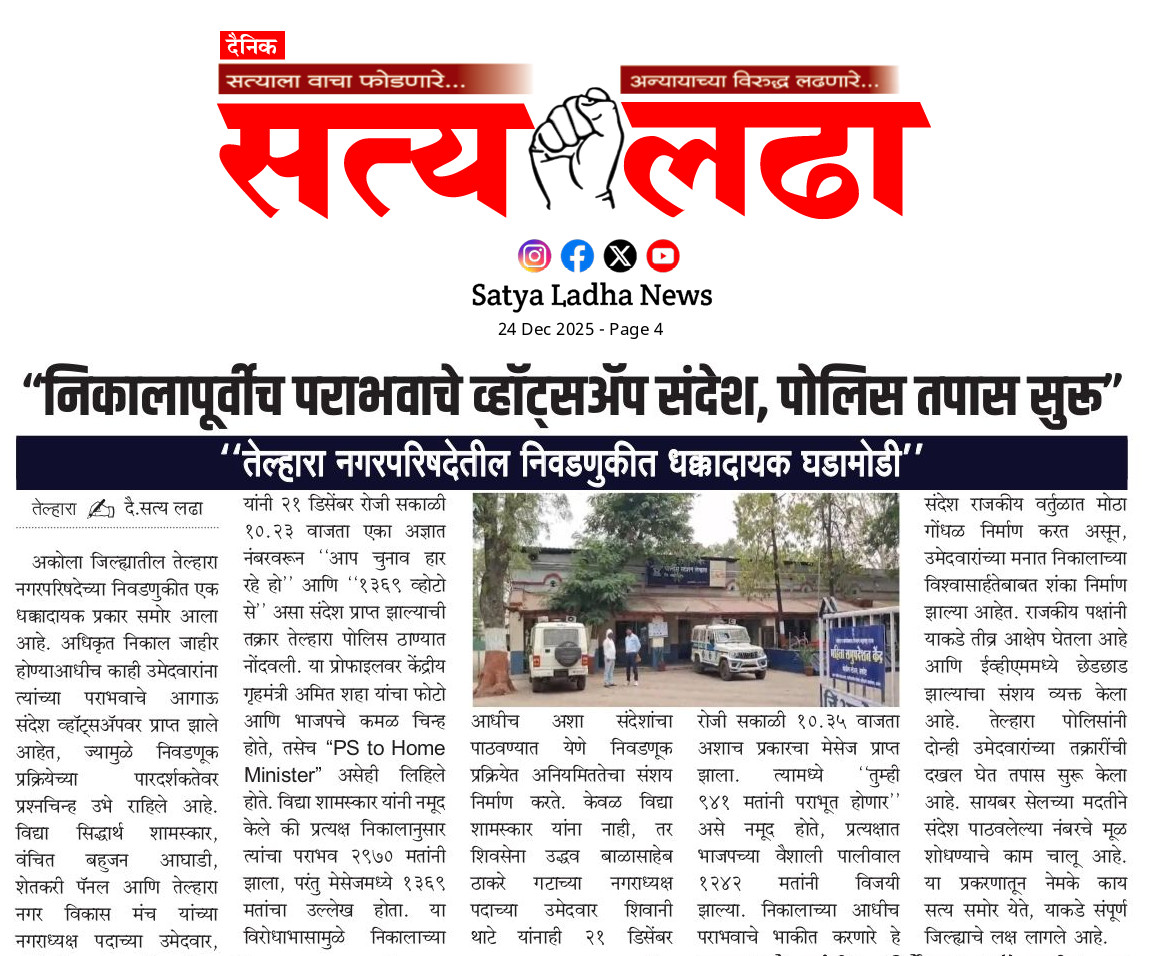 AKOLA NEWS भूमिगत गटार योजनेच्या अपयशासाठी माजी.खा. धोत्रे जबाबदार – अॅड. प्रकाश आंबेडकर admin December 23, 2025 Share this: Share on Facebook (Opens in new window) Facebook Share on X (Opens in new window) X WhatsApp Facebook Twitter Like this:Like Loading... Post navigation Previous: अकोल्यात शिदे शिवसेनेत उघड गटबाजी संजय राठोड यांच्या उपस्थितीत दोन गटात राडाNext: खाली मंगलकार्यालय, वरती महाविद्यालय ; विद्यार्थ्यांच्या भवितव्याशी खेळ..? Leave a Reply Cancel replyYour email address will not be published. Required fields are marked *Comment * Name * Email * Website Save my name, email, and website in this browser for the next time I comment.