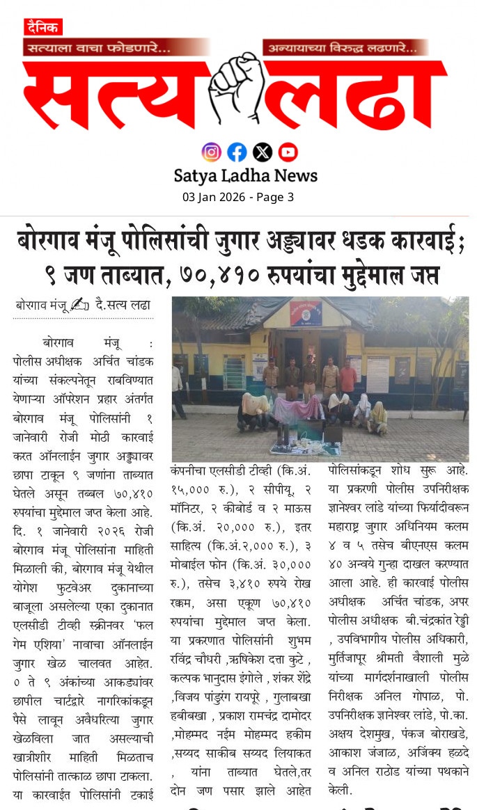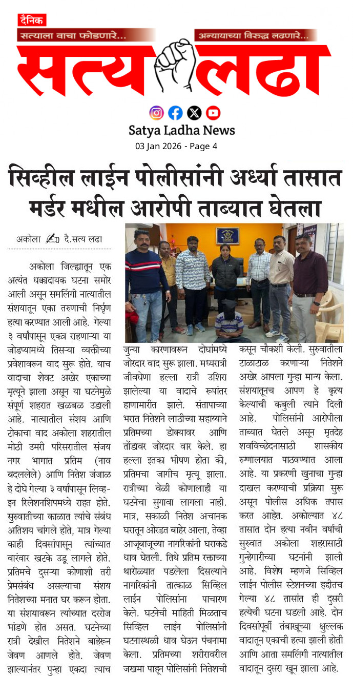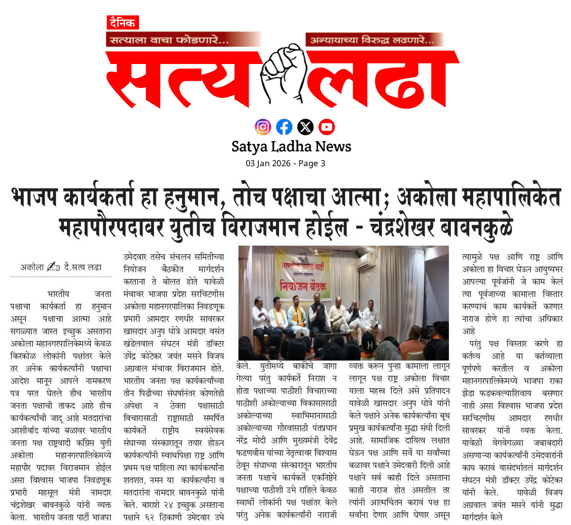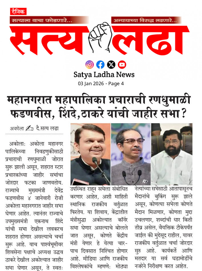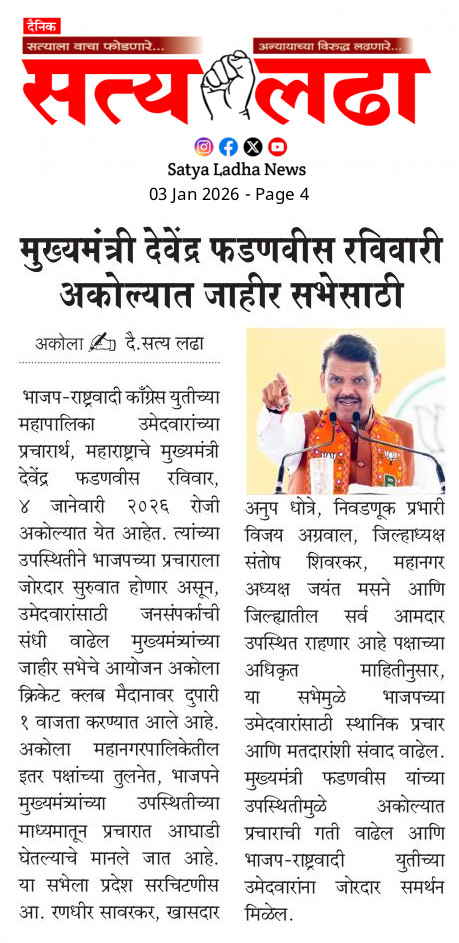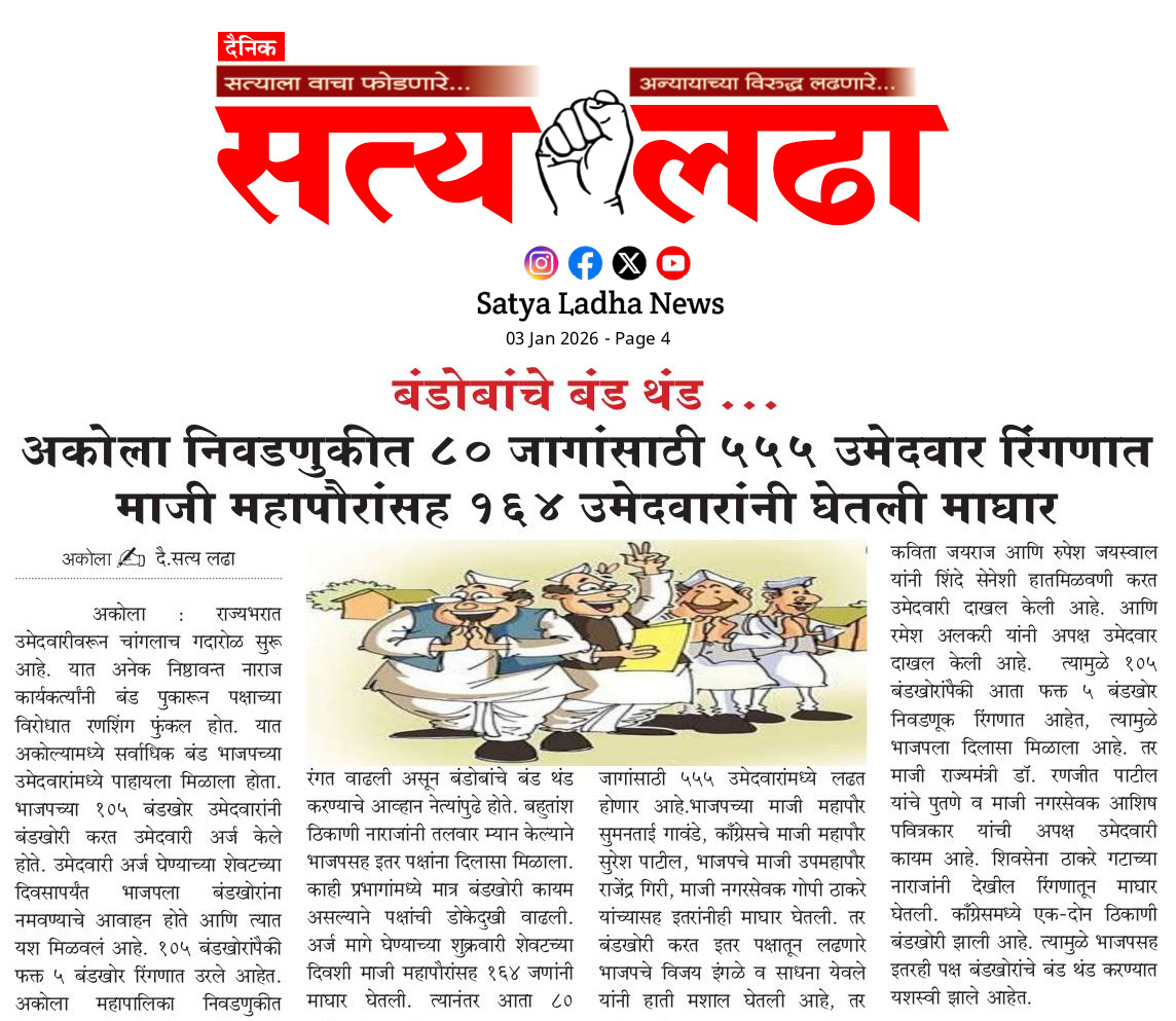AKOLA NEWS बंडोबांचे बंड थंड … अकोला निवडणुकीत 80 जागांसाठी 555 उमेदवार रिंगणात admin January 2, 2026 Share this: Share on Facebook (Opens in new window) Facebook Share on X (Opens in new window) X WhatsApp Facebook Twitter Like this:Like Loading... Post navigation Previous: सिव्हील लाईन पोलीसांनी अर्ध्या तासात मर्डर मधील आरोपी ताब्यात Next: एमआयएम लावणार काँग्रेसला सुरूग…!!! भाजपा – राष्ट्रवादीला होणार फायदा…??? Leave a Reply Cancel replyYour email address will not be published. Required fields are marked *Comment * Name * Email * Website Save my name, email, and website in this browser for the next time I comment.